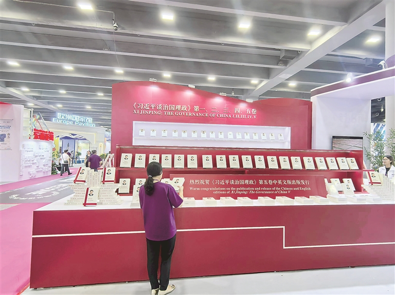 读者在广州南国书香节展台翻阅《习近平谈治国理政》第五卷。 陆彩荣 摄